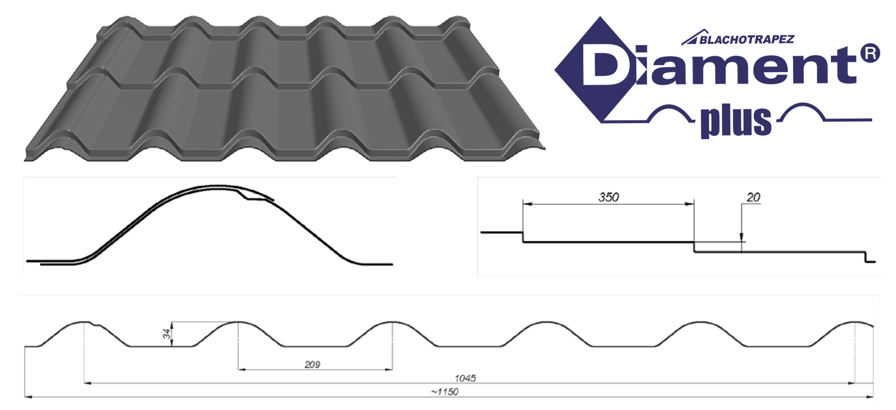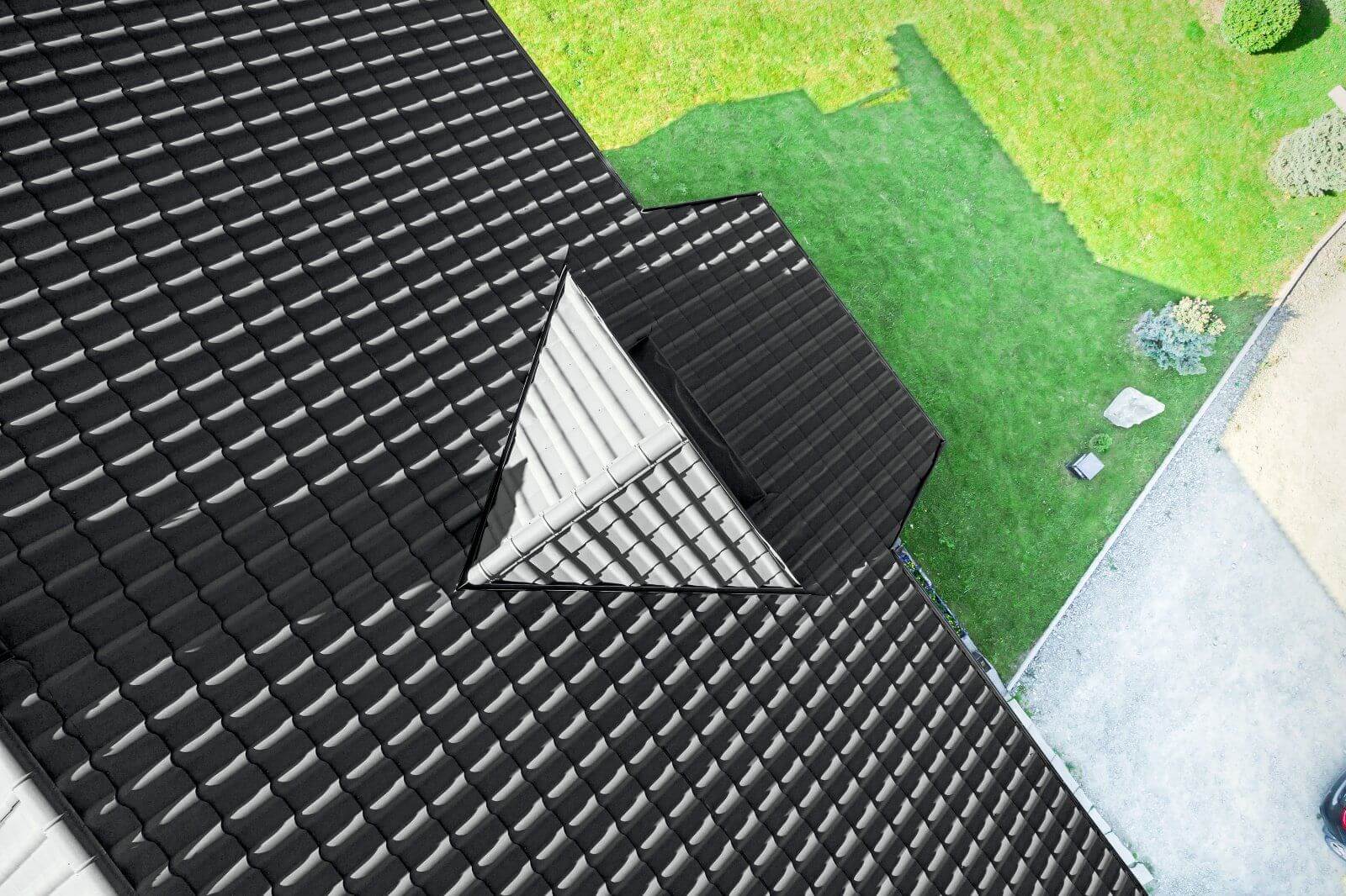 Традиционният модел метални керемиди DIAMENT PLUS допринася за специфичен вид на покрива, който привлича вниманието към наклона на покрива.