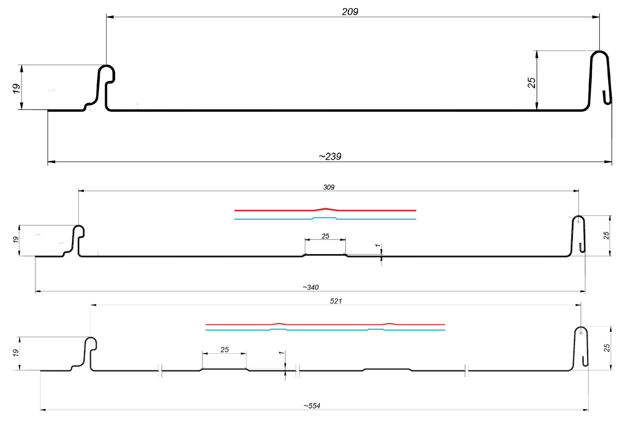 Панел Ретро 25 е най-доброто доказателство за това – дава възможност за избор между 3 различни ширини с височина на ръб 25 мм. В зависимост от планирания ефект, този продукт може да допълни както традиционното строителство, така и да подчертае модерната визия на сградата.