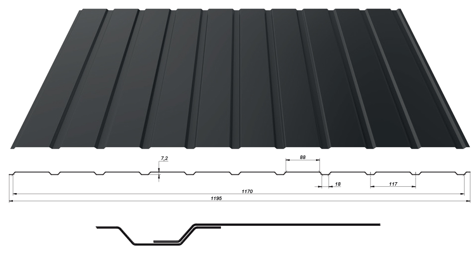 Профил Т8 с приложение – обшиване на стрехите, с цел трайно и естетично завършване на всеки вид скатни покриви. За разлика от дървени или ПВЦ-обшивки, металната обшивка не се деформира от климатични влияния (ниски/високи температури), влага, не развива плесен и мухъл, осигурява надеждна защита от вредители, възпрепятства гнезденето на птици.